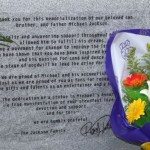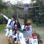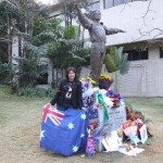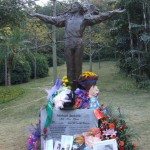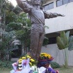 Outside there were still plenty of fans admiring and photographing the statue, but now I could see it up close and in its entirety rather than over the heads of a crowd. How beautiful, and how much like Michael it was. The sculptor, Lu Zengkang, had certainly captured Michael’s physical and spiritual essence under the guidance of the local MJ fans. Revealingly Lu told the local media that his intention had been “to show the benevolent, tolerant and peace loving inner world of the musician” (1) The base of the statue was surrounded by floral tributes, touching messages of love and devotion, photographs and drawings executed by fans as well as toys, including charity teddy bears from UNICEF which held a fundraising stall at the event. There was even an Australian flag left by yours truly.
